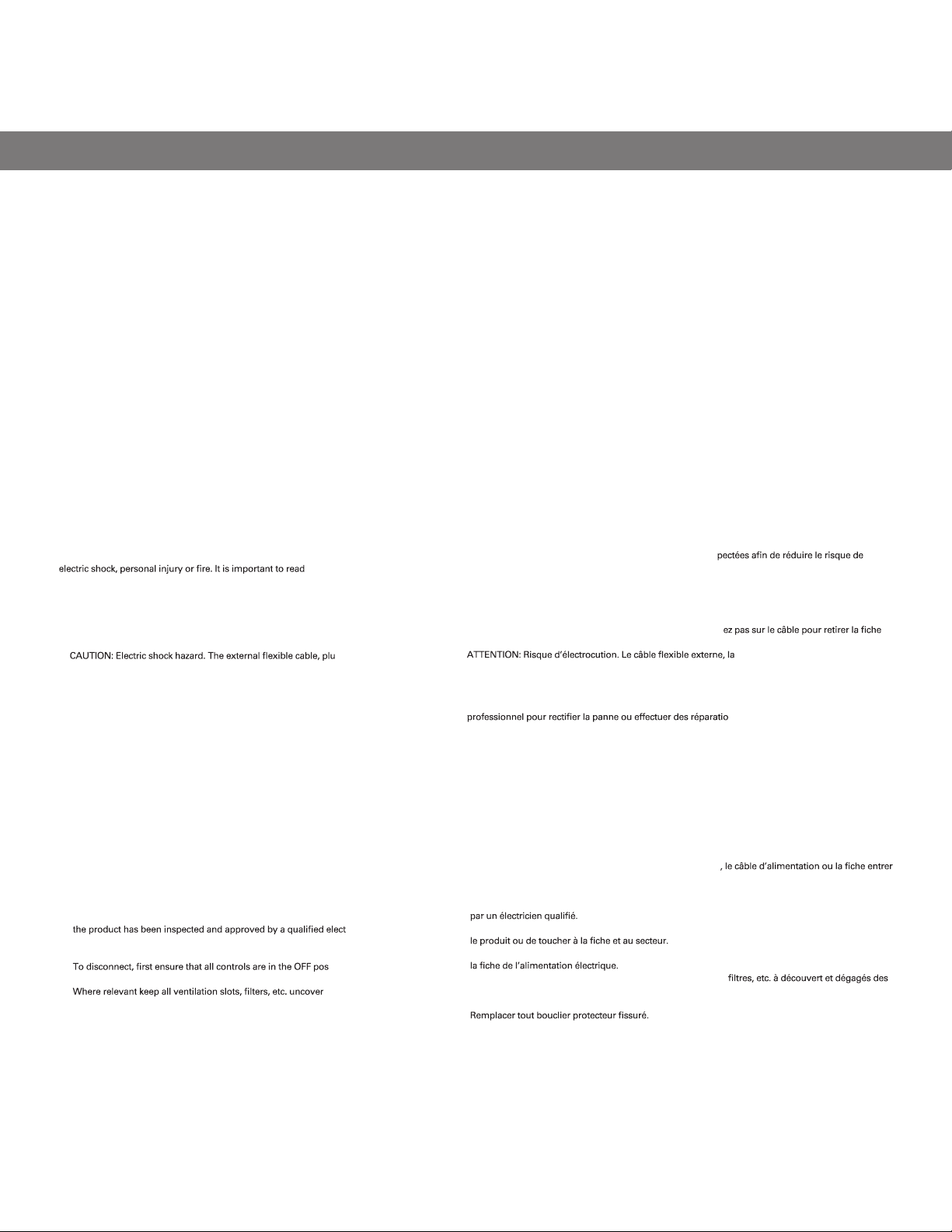 électrique etdébranchez-la. Nepas réutiliser jusqu’à ce que le produit ait été inspecté et approuvé