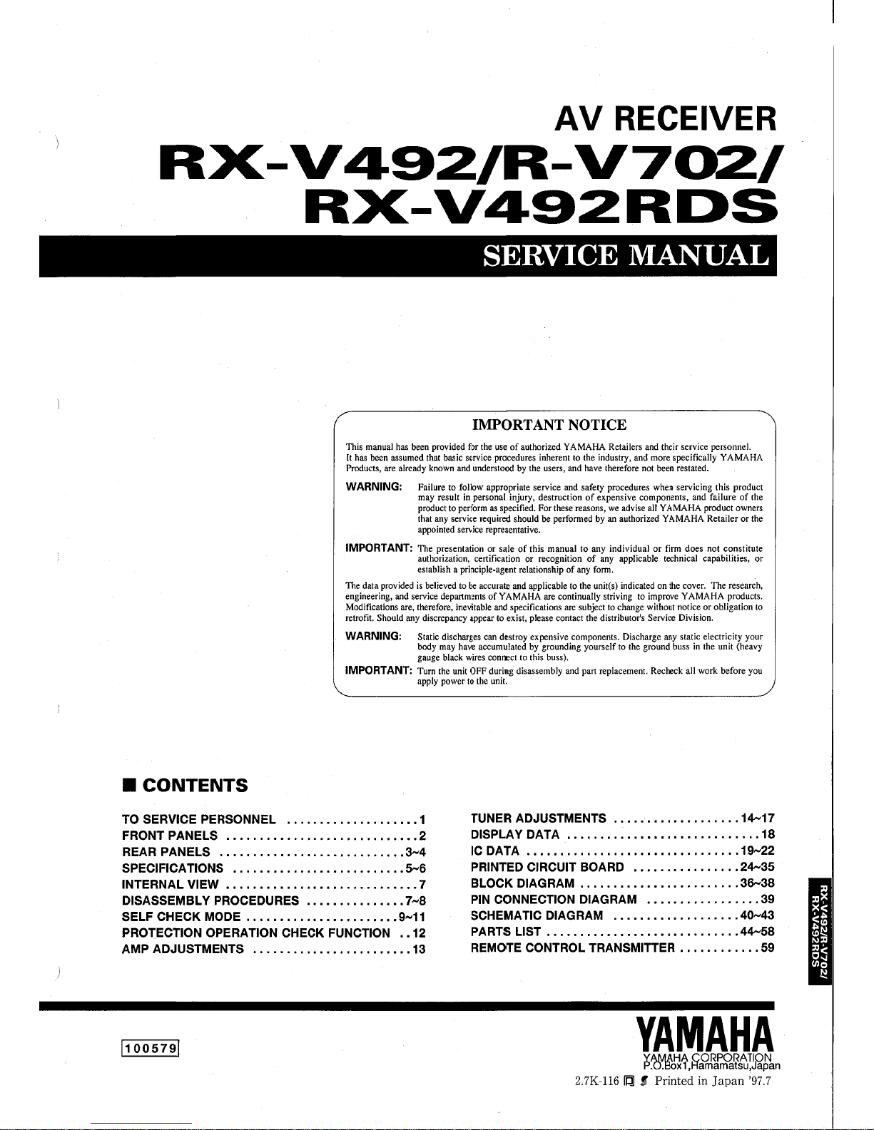 Yamaha RX RX-Z7 Manuale utente
